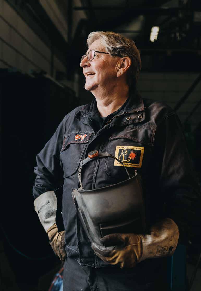 Marinus is nog steeds drie dagen in de week te vinden in de werkplaats van het gelijknamige las- en metaalbewerkingsbedrijf Dijkerman. In 1990 richtte hij dit bedrijf samen met zijn vrouw Martha op, waarmee hij een langgekoesterde wens vervulde. Na ruim 20 jaar succesvol aan de zaak te hebben gewerkt, werd in 2011 het stokje definitief overgedragen aan zoon Teun en schoondochter Marloes. Maar nog steeds is Marinus een vaste én enthousiaste medewerker in het team. “Zo lang ik het nog kan, denk ik niet na over stoppen. Met je handen werken is wat mij betreft het mooiste dat er is.”