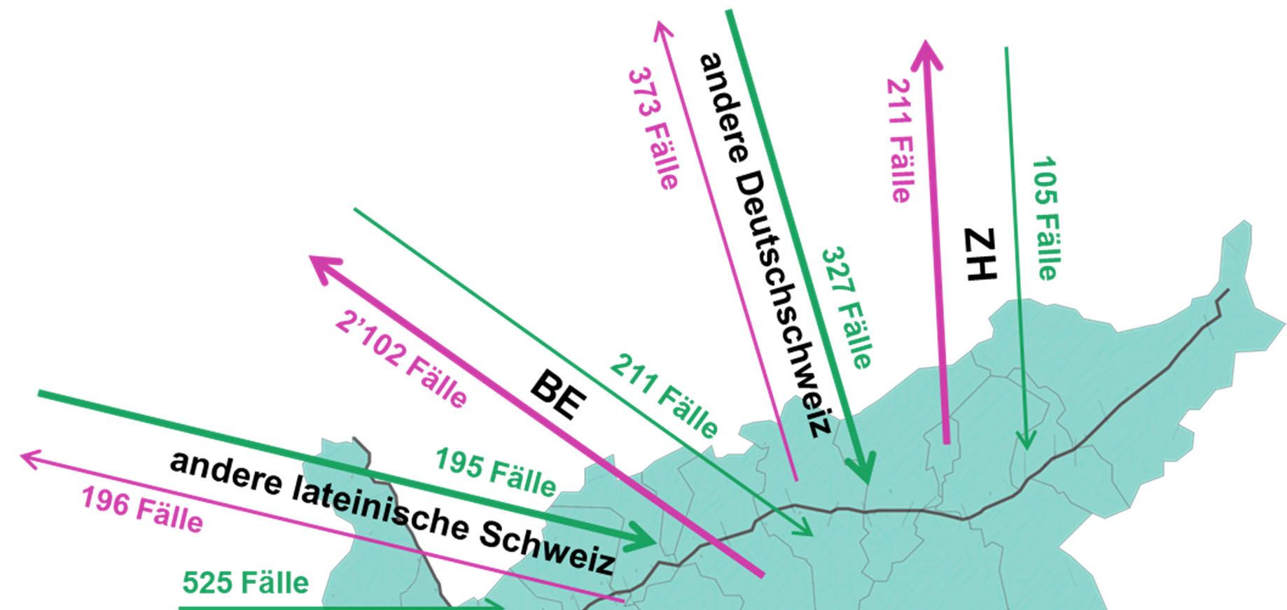 Abbildung 33: Interkantonale Patientenströme in der stationÀren Psychiatrie, 2023 [Quelle: MS, BFS]