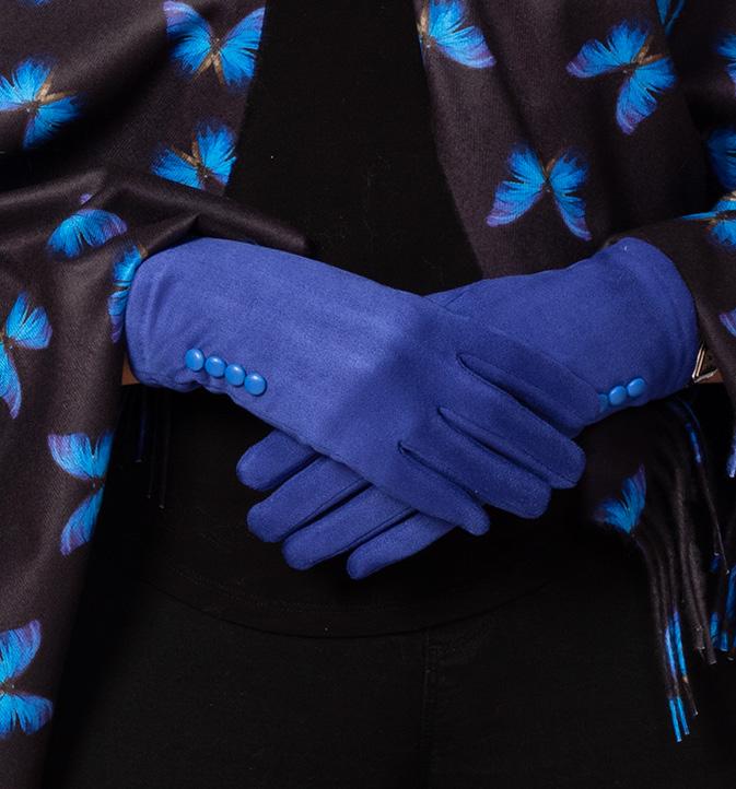 In a brilliant blue, these traditional faux suede material gloves feature button detail and a heart-shaped, phone-friendly finger-touch pad. Ref. C200280 £14.99