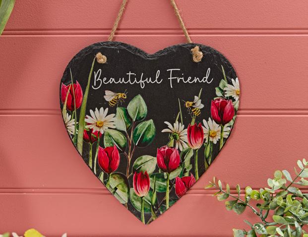 Looking to add a rustic touch to your gift for that special friend? Consider this tulip and bees inspired hanging heart slate sentiment which features the heartfelt quote “Beautiful Friend” and measures 8.6 x 8.6 inches (22 x 22cms). Ref. G201563 £14.99