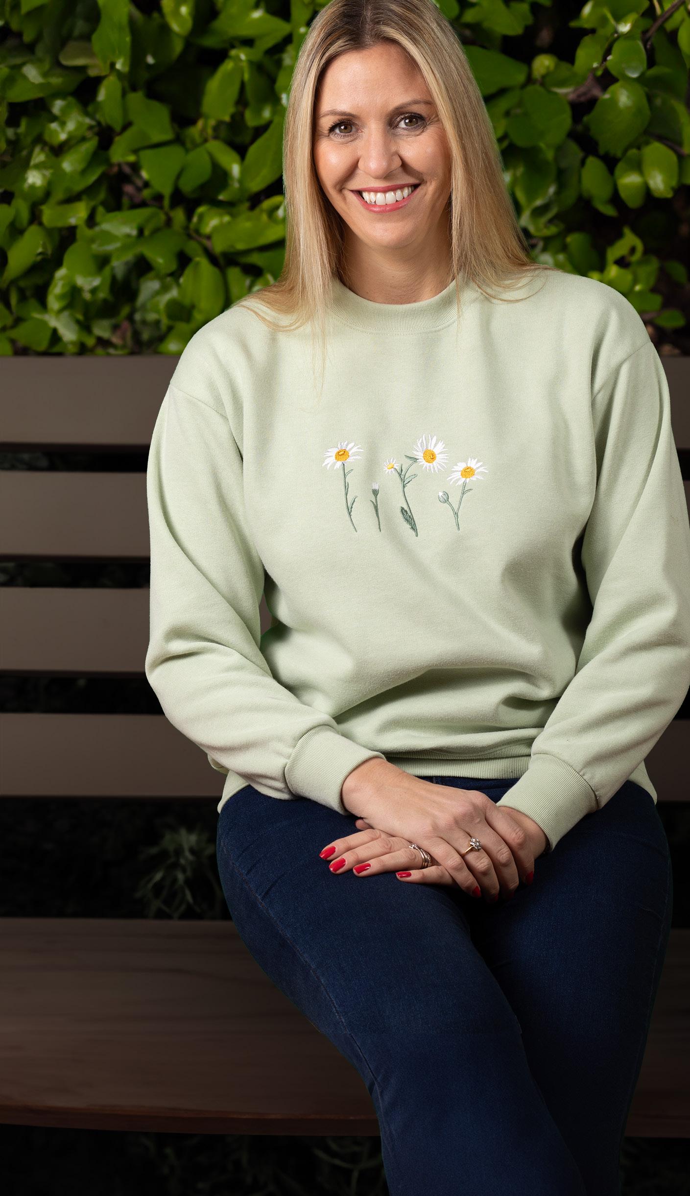Carefully embroidered on the front with an original daisies design, this fresh soft peach jersey top features a rounded neckline. In a warm fleecy-backed cotton/acrylic mix, this hemmed square-cut top is very comfortable to wear and is fully machine washable.