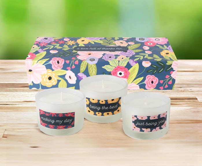 Celebrate special moments with our thank you set of three scented candles in a charming blue floral gift box. Ideal for expressing gratitude, these candles give thanks for “making my day, being the best and just being you”. Perfect for thanking loved ones while adding a touch of sophistication to any space. Ref. G201709 £19.99