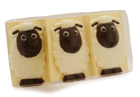 A set of three chocolate Spring Lambs to soon have the taste-buds gambolling, complete with Happy Easter greetings message. 90g. Ref. G164031 £10.99