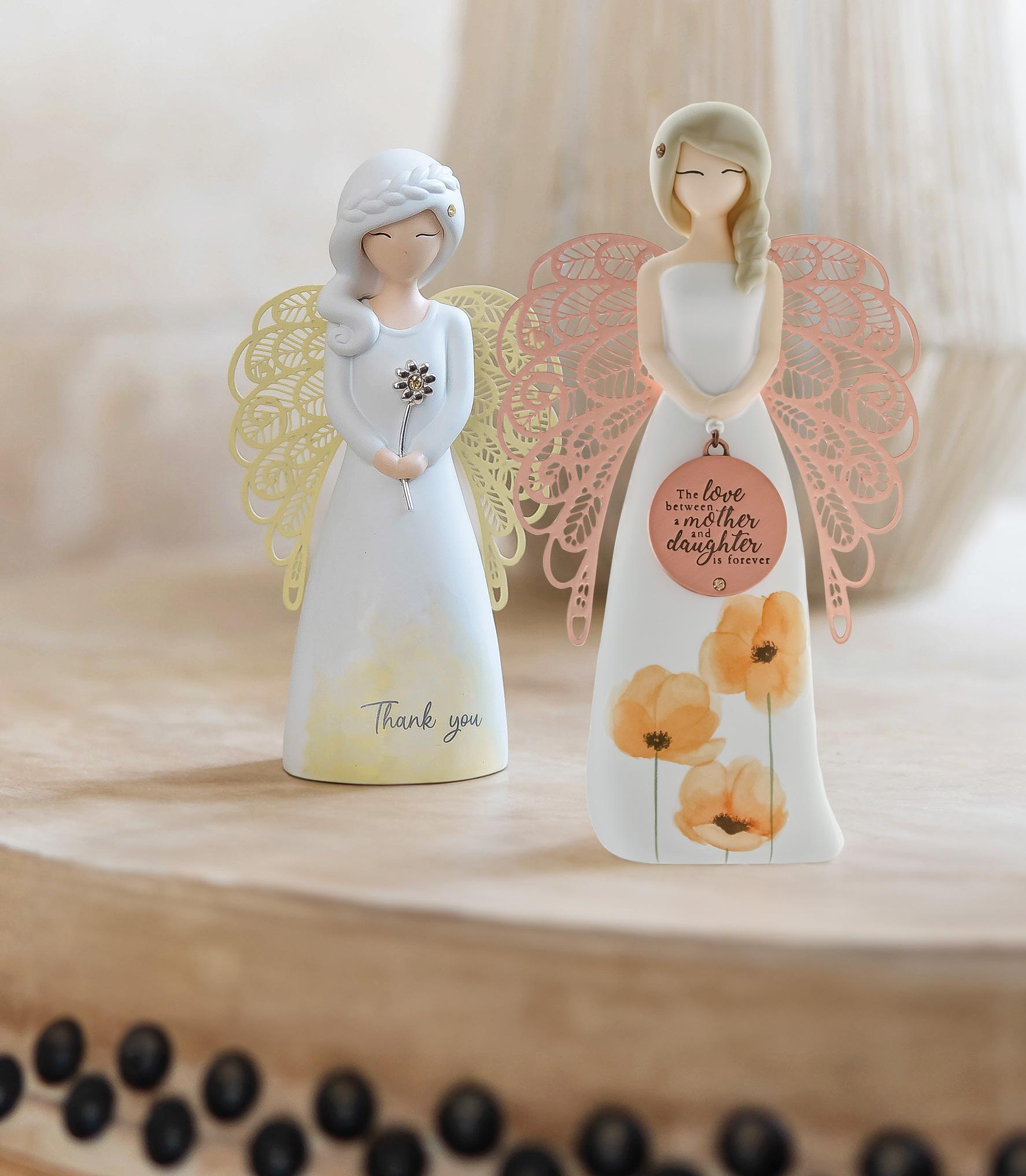 Surprise a cherished friend or family member with this angelic resin angel reading “Thank you”. With long white flowing plaited hair and delicate lemon coloured wings, she carries a silver flower and stands 4.9” (12.5cms) tall. Ref. G202175 £24.99