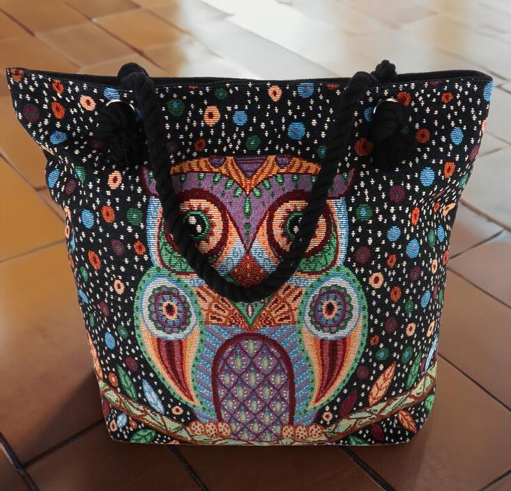 A handy craft or shopping bag in a robust & colourful polyester tapestry material with zip fastening closure, inside pocket and rope grab handles - you’ll have a hoot whilst shopping. Size 17.7 x 12.9’’ (45 x 33cms).