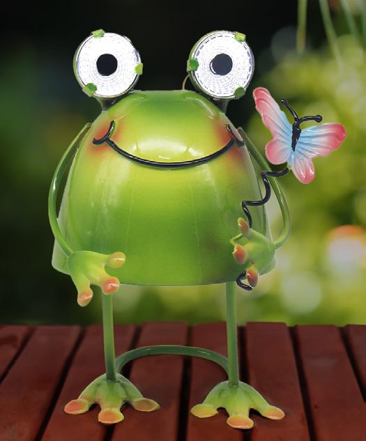This colourful eye-catching frog illuminates to make a wonderful decorative garden feature - a comical LED solar-powered metal ornament, born to sit comfortably on decking, patio or in a flower bed. Height 5.1” (13cms). Ref. G201408 £15.99