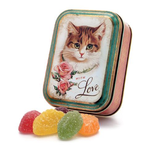 Deliciously vintage, our ‘With Love’ keepsake tin decorated with a charming kitten hides its sweet secret of 120g of moist fruit jellies inside to make a tasty gift for all. Ref. G121435 £7.99