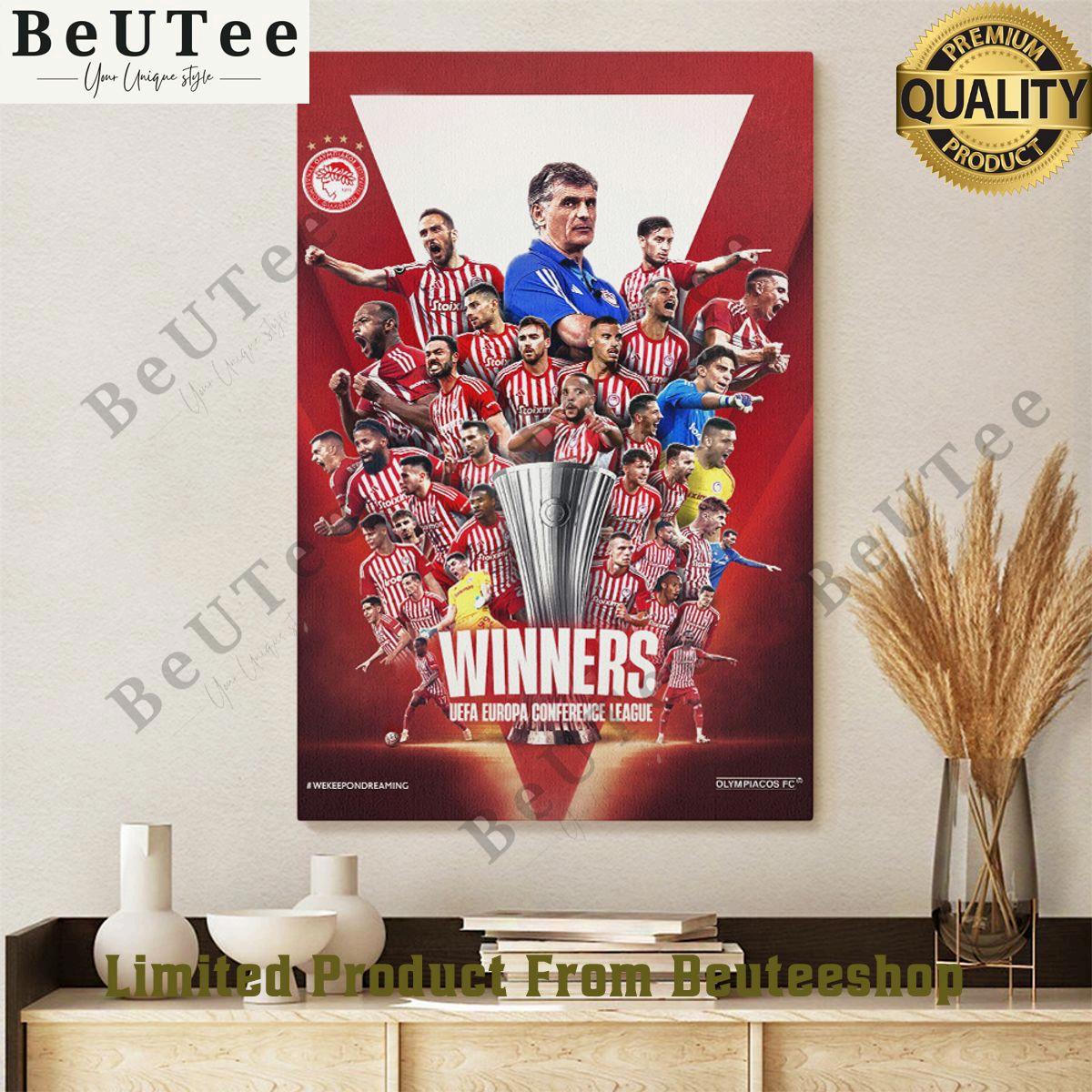 The “Olympiacos F.C. Winners UEFA Europa Conference League Canvas” is a remarkable piece of memorabilia for any die-hard fan of Olympiacos F.C. This canvas beautifully captures the triumphant moment when the team secured their prestigious UEFA Europa Conference League victory, making it a cherished addition to any supporter’s collection.
