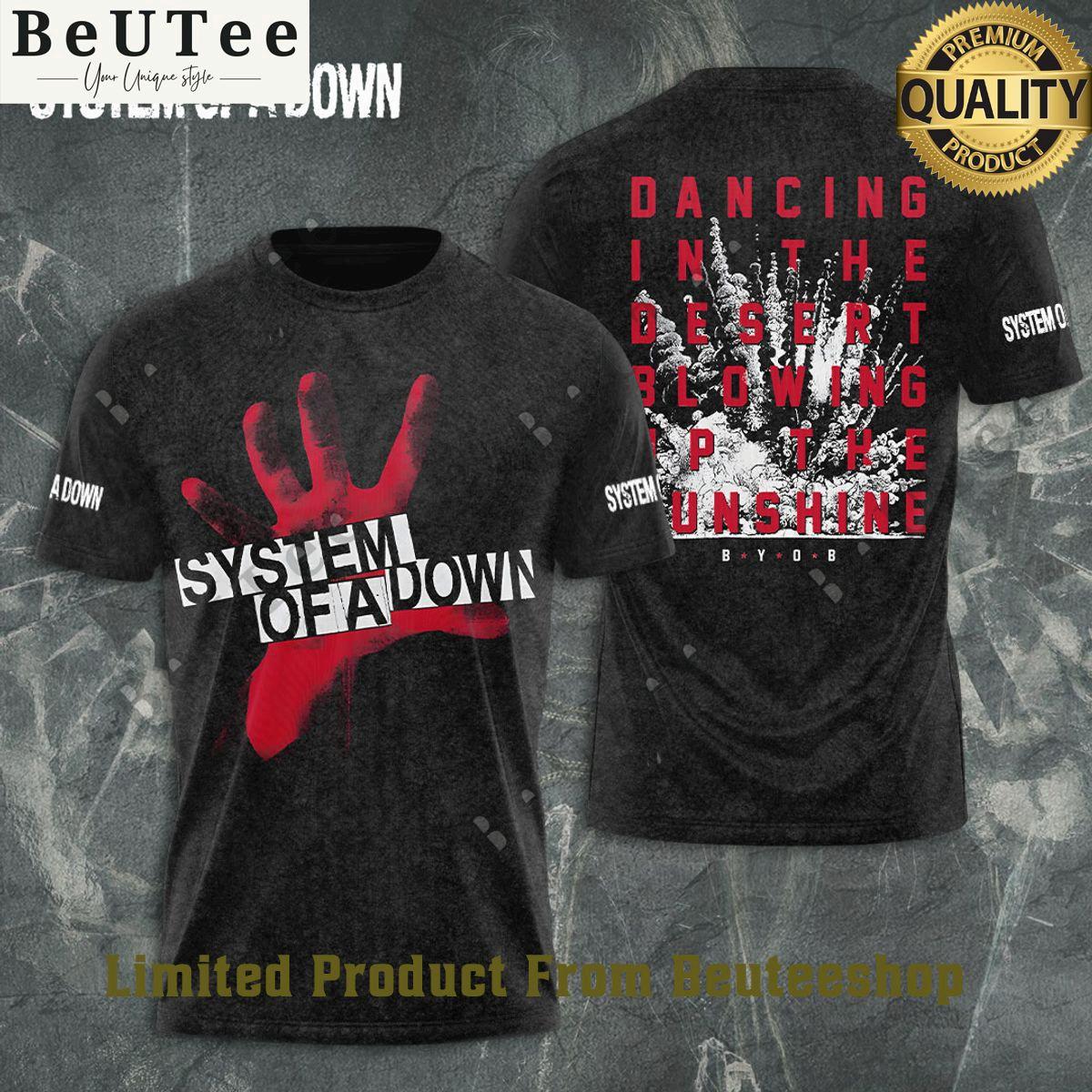 Step into a world of surreal beauty and rebellious energy with our System of a Down hand dancing in the desert blowing the sunshine 3D t-shirt. This mind-bending design captures the essence of the band’s iconic imagery and infuses it with a psychedelic twist. Watch as the hand seemingly dances in the desert, its fingers swirling and manipulating the sun’s rays.