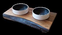 Bowl holder in walnut wood with two removable bowls