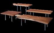Crossline slatted asymmetrical solid walnut, elm, cedar and oak table