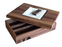 Posacenere ricavato da un unico blocco di legno, con incavi laterali per posare i sigari e concavità centrale – legno di noce