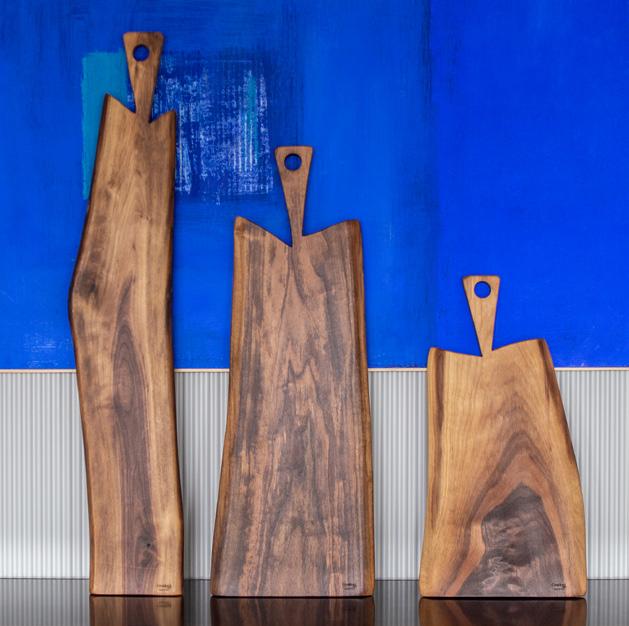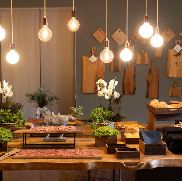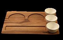 The four cutting board stands, available in different heights, make serving easier and optimize table space. Together, they create an elegant play of levels that enhances every presentation.