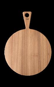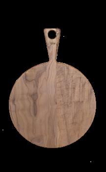 Tagliere tondo con manico, dalle linee morbide e senza angoli. Perfetto per servire in tavola con eleganza e naturalezza - legno di noce