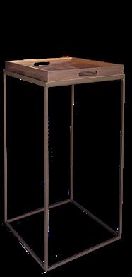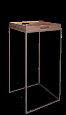 35x35 cm tray with bronzed metal stand, designed to fit between sofa cushions and provide a convenient surface. A practical and elegant living room side table – walnut wood