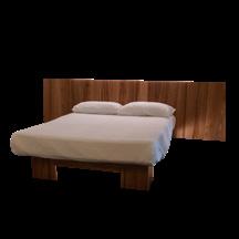 Testata interamente in legno massello di noce o olmo con inserito led a luce calda. Headboard entirely in walnut or elm with inserted warm light LED
