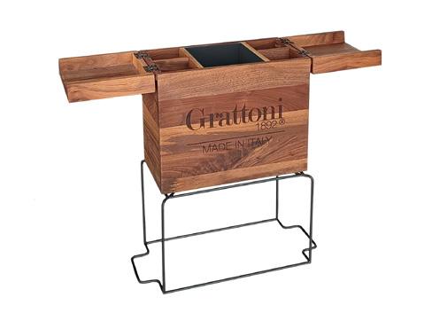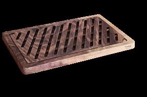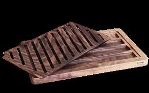 Tagliere con griglia estraibile, pensato per tagliare e servire il pane in modo pratico ed elegante. Gli scavi nel legno accolgono la griglia e raccolgono le briciole, mantenendo la tavola ordinata - legno di noce