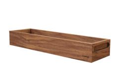 Vassoio 40x40 cm con maniglie laterali nascoste sotto il piano d’appoggio. Pratico ed elegante per servire o presentare – legno di noce 40x40 cm tray with side handles hidden beneath the top surface. Practical and elegant for serving or presenting –walnut wood