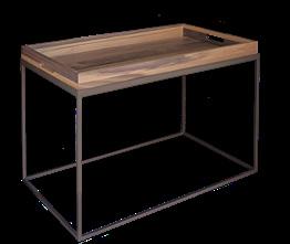 Vassoio 35x35 cm con supporto in metallo bronzato, pensato per incastrarsi nei divani e offrire un comodo piano d’appoggio. Un pratico tavolino da soggiorno – legno di noce
