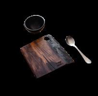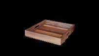 30x30 cm tray with low profile and smooth base, practical for serving with elegance at the table or for refined presentations –walnut wood