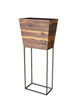 35x35 cm tray with bronzed metal stand, ideal for use beside the table or fitting into low coffee tables, practical and refined –walnut wood