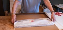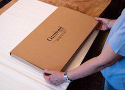 L’imballaggio di ogni prodotto viene realizzato con cura, utilizzando un apposito cartone e carta velina, entrambi personalizzati con il nostro logo, per garantire protezione ed eleganza. The packing of each product is done carefully, using a special cardboard and tissue paper, both customised with our logo, to ensure protection and elegance.