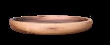 Round plate made from a single piece of solid wood with natural grain. Elegant and unique, perfect for serving appetizers and starters – walnut wood