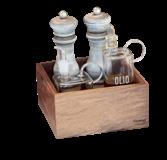 Le quattro alzate per tagliere, di diverse altezze, facilitano il servizio e ottimizzano lo spazio sulla tavola. Insieme creano un elegante gioco di livelli che esalta ogni presentazione.
