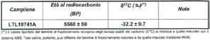 Il campione indicato in Tabella 1 è stato sottoposto a datazione con il metodo del radiocarbonio mediante la tecnica della spettrometria di massa ad alta risoluzione (AMS), presso il Centro di Datazione e Diagnostica (CEDAD) dell’Università del Salento.
