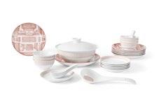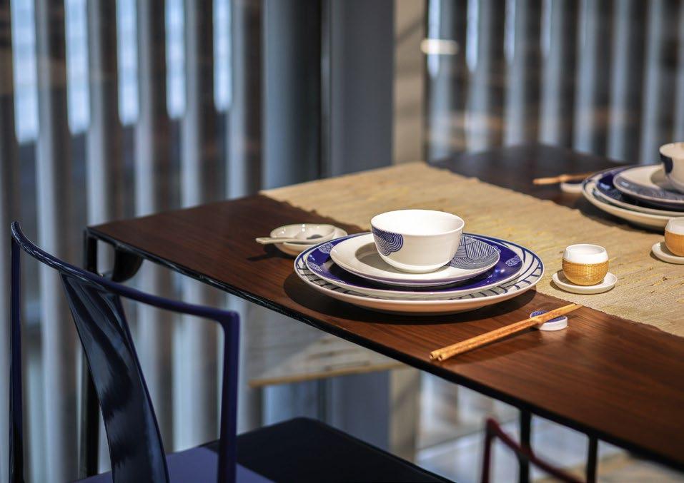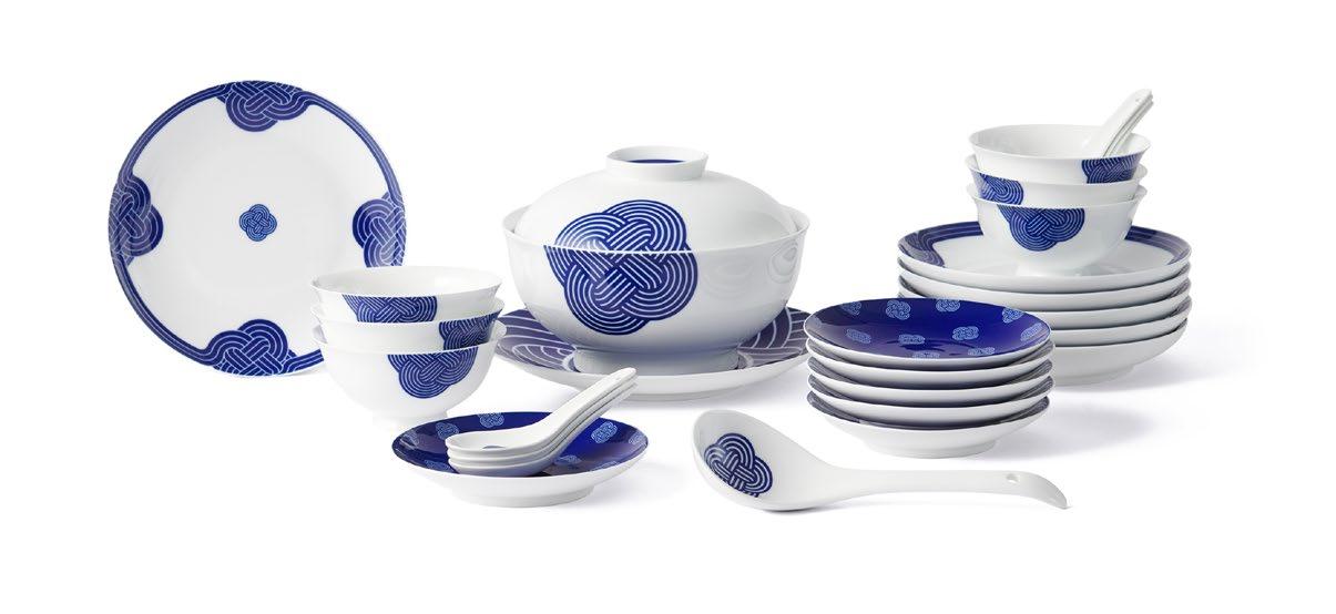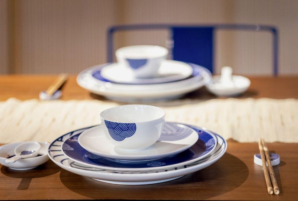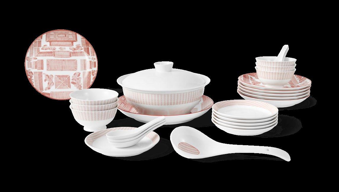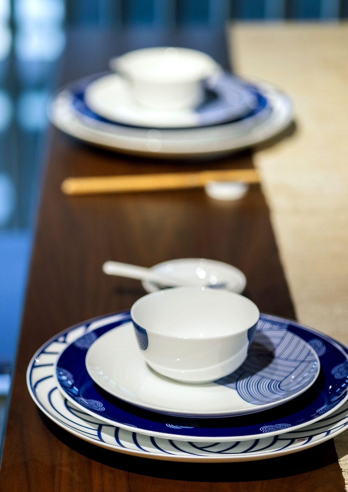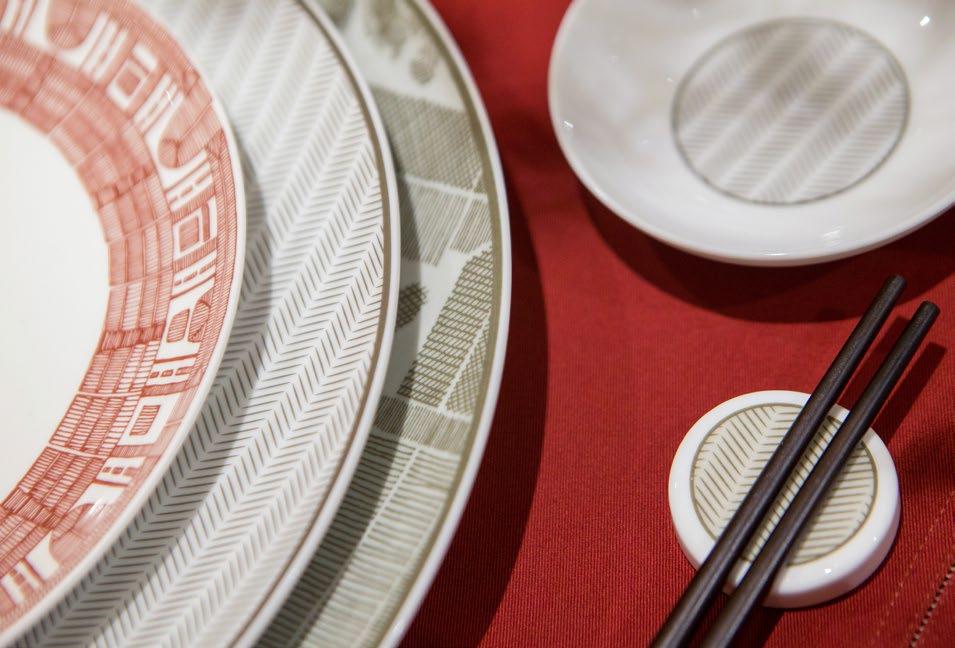 以中国传统饮食文化为灵感,结合现代生活方式,SHANG XIA 上下创造独 具匠心的中式餐具。中国结系列以环环相扣的幸运绳结符号,凝结美好 寓意,茶歌系列将孔庙与竹编手绘画卷融入盘中,展现建筑艺术与传统 手工艺的智慧。使用釉中彩技法烧制餐瓷,凝成盘中意境,再现博大精 深的中式饮食传统。