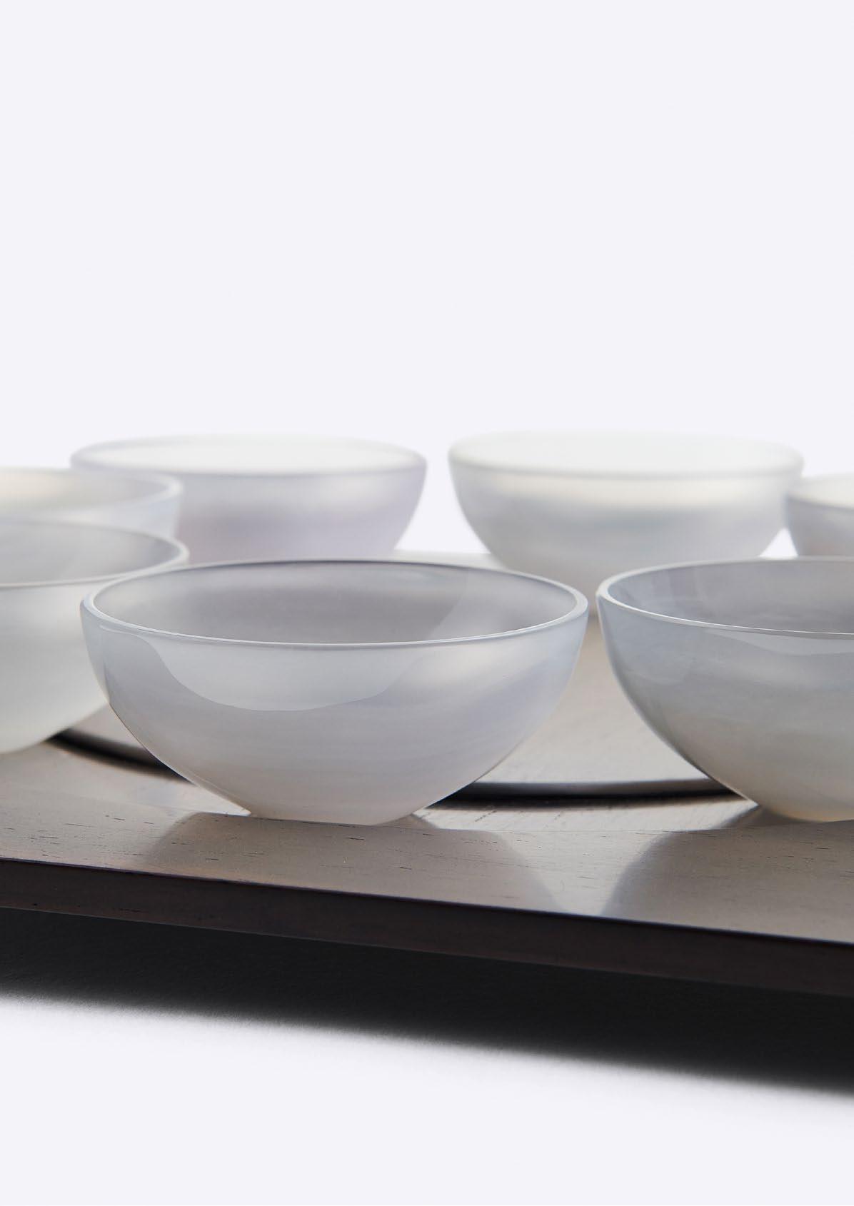 SHANG XIA 上下薄胎瓷精选景德镇高岭土,经四十多道工 序制作而成。瓷壁薄约 0.5 到 1 毫米,需经百余次的手工 修胚,从而做到白如玉、薄如纸、明如镜、声如磬。因此, 薄胎瓷素有“薄如蝉翼、轻如浮云,轻叩闻之宛若天籁” 之美赞。