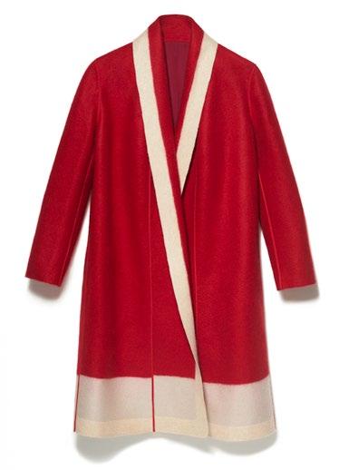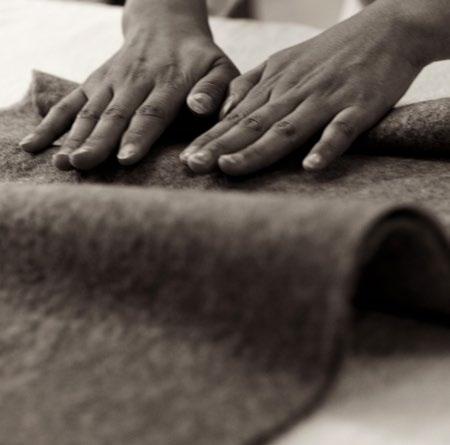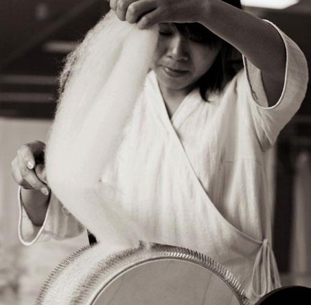 SHANG XIA 上下与蒙古手工艺人合作研究,运用游牧民族流 传的羊绒蒙古包的技艺制作羊绒毡服饰。材质甄选自山 羊绒,保暖性与轻便性俱佳,因其珍贵而被称为“软黄金”。 成衣全手工揉制,没有拼缝、没有针脚,改良之后更加舒 适、柔软,更符合当代穿着习惯。设计灵感来自于传统汉服, 结合当代创新设计,表达了中国独有的优雅和风度。