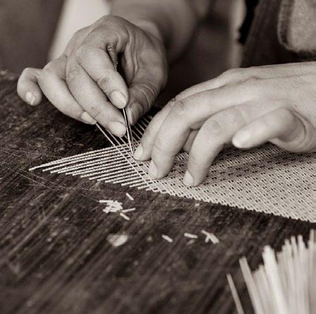 竹丝镶嵌是省级非物质文化遗产,流传自清代,是宫廷的 装饰工艺。选用生长 4 至 6 年的成年毛竹,一根竹子通常 只有中段竹节匀长的 4 至 5 节可供使用,竹节长达 30 厘米,