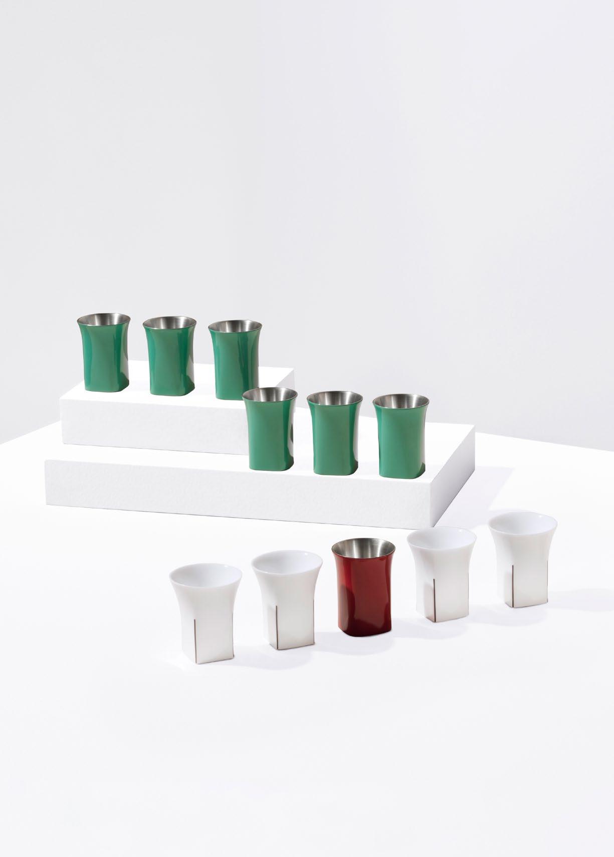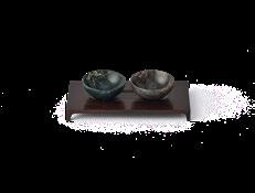 将古老的蛋壳漆工艺加以创新,应用于家居产品。一件作 品历经 7 道手工工序,每一道工序均需不同手工艺人合力 完成。反复水磨打造出镜面效果,最细的砂纸为 3000 目 砂纸。蛋壳漆的皴裂纹细碎又富于变化,仿宋代瓷器开片 的效果。胎釉浑然一体,表面温润如玉,暖暖含光。