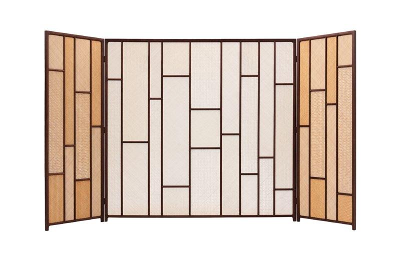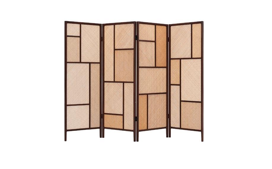 清影系列竹丝镶嵌黑胡桃木四折屏风