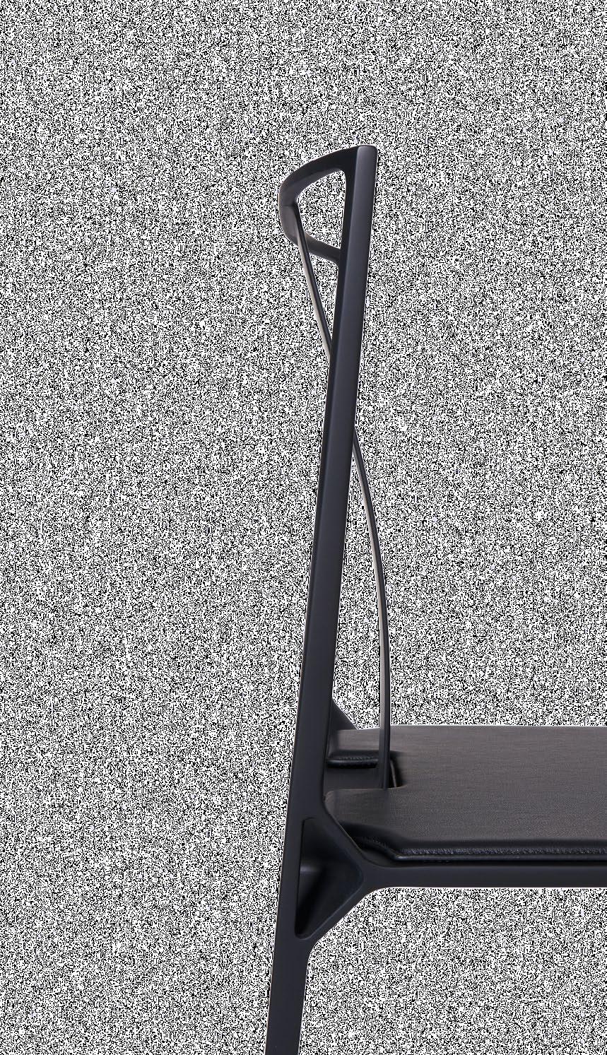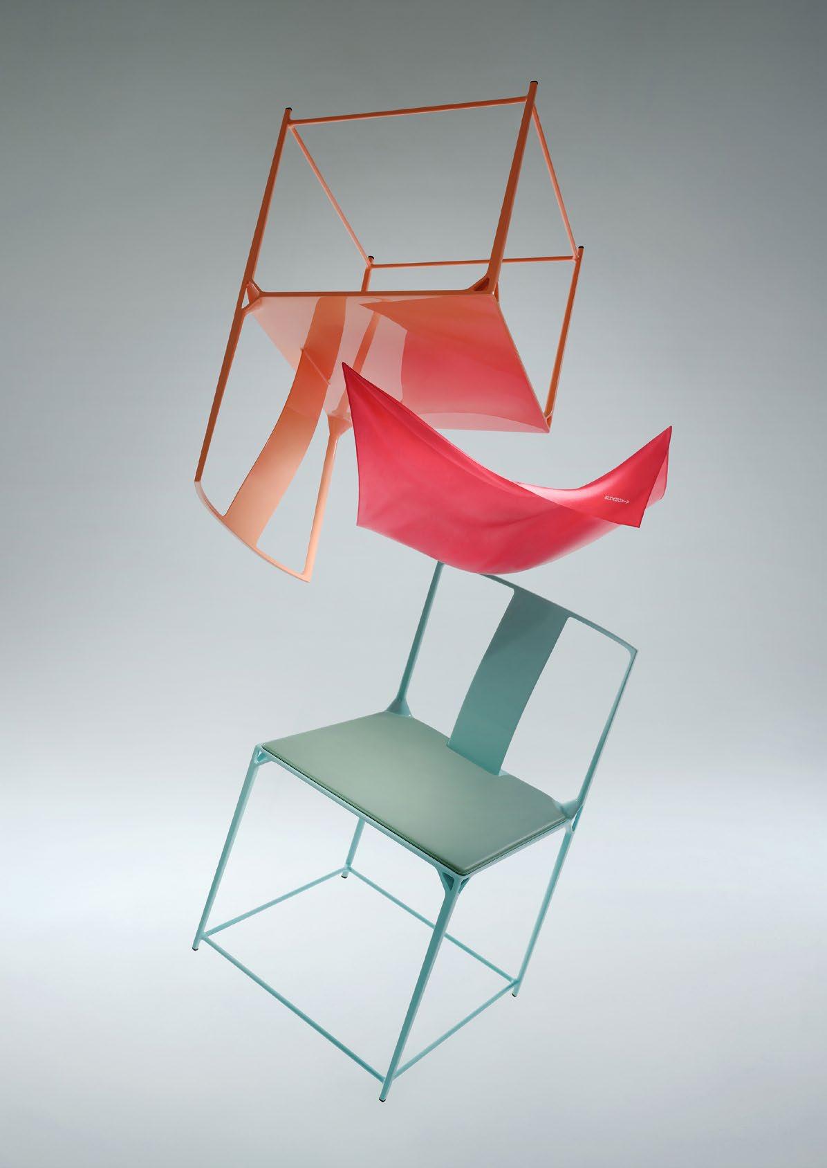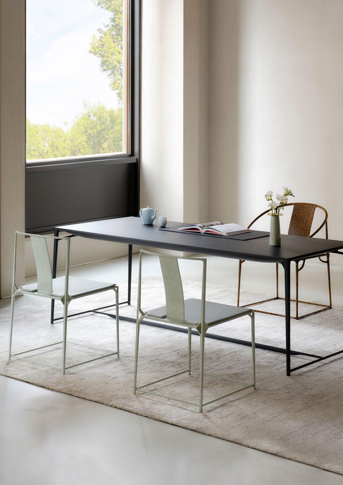 2015 年,SHANG XIA 上下推出了一件具有革新意义的作 品― 大天地系列碳纤维椅。这把椅子大胆使用碳纤维, 对传统明式官帽椅进行极致简化,坐面仅 7 毫米厚,自重 仅 2.7 公斤,但能承受 130 公斤的负重,并且只需一根手指 即可轻易勾起,在体量、线条与功能上实现了令人叹为观 止的平衡之美。明式椅的灵性悠然回荡其中,但又充满了 未来感与科技感。它兼具优雅与性感,融合经典与当代元 素,由此成为 SHANG XIA 上下最具代表性的作品之一。