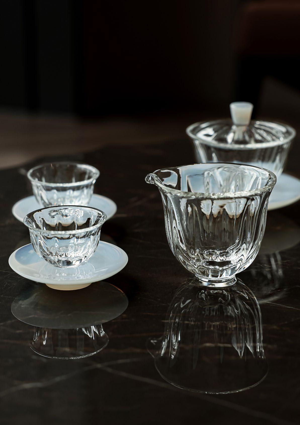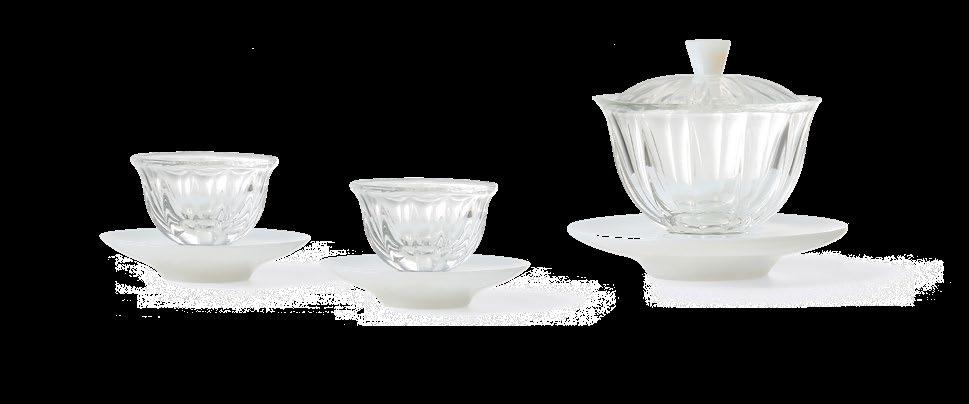 瓜棱玻璃对杯配玉色玻璃底托 Melon Glass Teacups with Jade-Colored Saucer ¥ 3,980