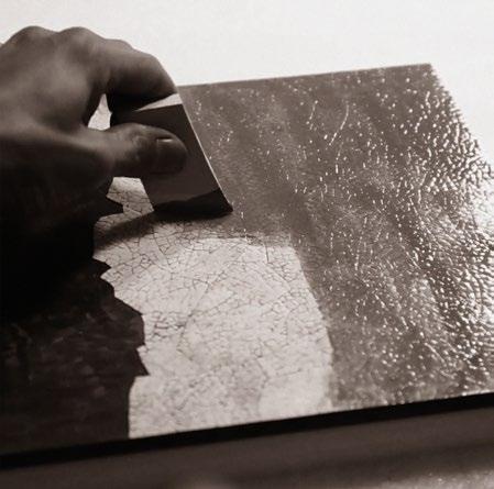 孔径 10 厘米,这样的竹子制成竹丝,才最为均匀平整。匠 人们用清润的长竹丝搭成底板,再用镊子衔着短丝一个个 嵌入,连片成型。一面光润,一面素朴,一片 10 厘米见方 的竹丝镶嵌花板,需上千竹片拼成,严丝合缝,宛若天成。