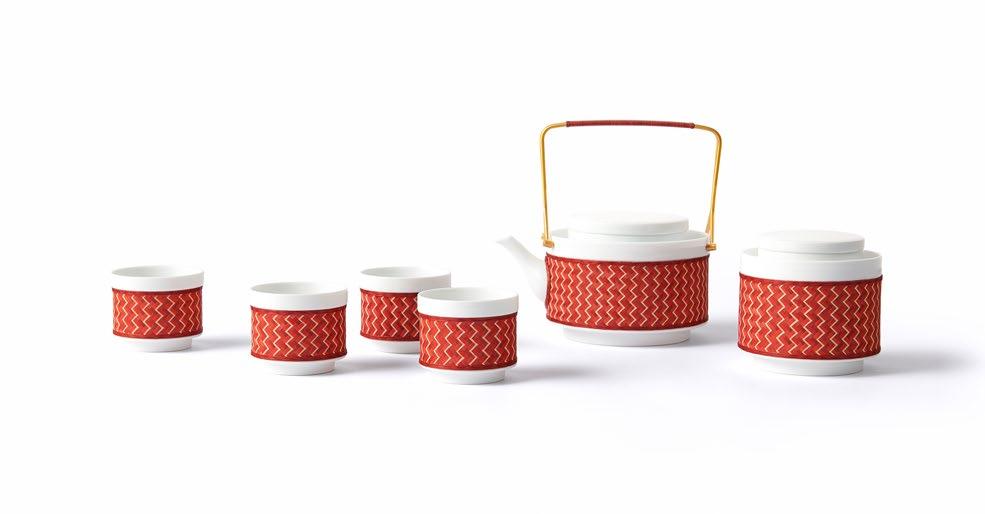 桥系列竹丝扣瓷红色茶具套装 Bridge Collection Porcelain and Bamboo Weaving Tea Set, Red ¥ 49,800