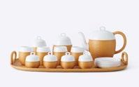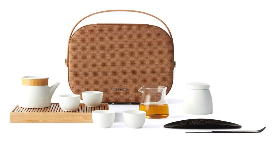 编织,竹编的每一处接头藏而不露。百斤原竹,只抽丝八 两。所使用的竹丝最细可达 0.33 毫米。白瓷功夫茶具由 1300 度以上高温烧制而成,光泽温润如玉。