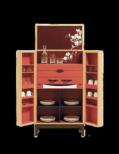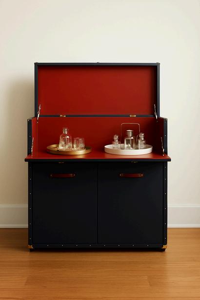 Reimagined as a cocktail or mini bar, this leather trolley brings a sense of theatre and playfulness to entertaining Designed for interaction, it transforms drink service into an experience where bottles, tools, and glassware are displayed with character and charm Thoughtful proportions and materiality keep it elegant, while customization allows each piece to reflect a distinct personality, from bold statements to subtle sophistication