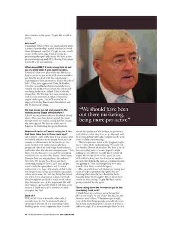 46 THOROUGHBRED OWNER & BREEDER DECEMBER 2008