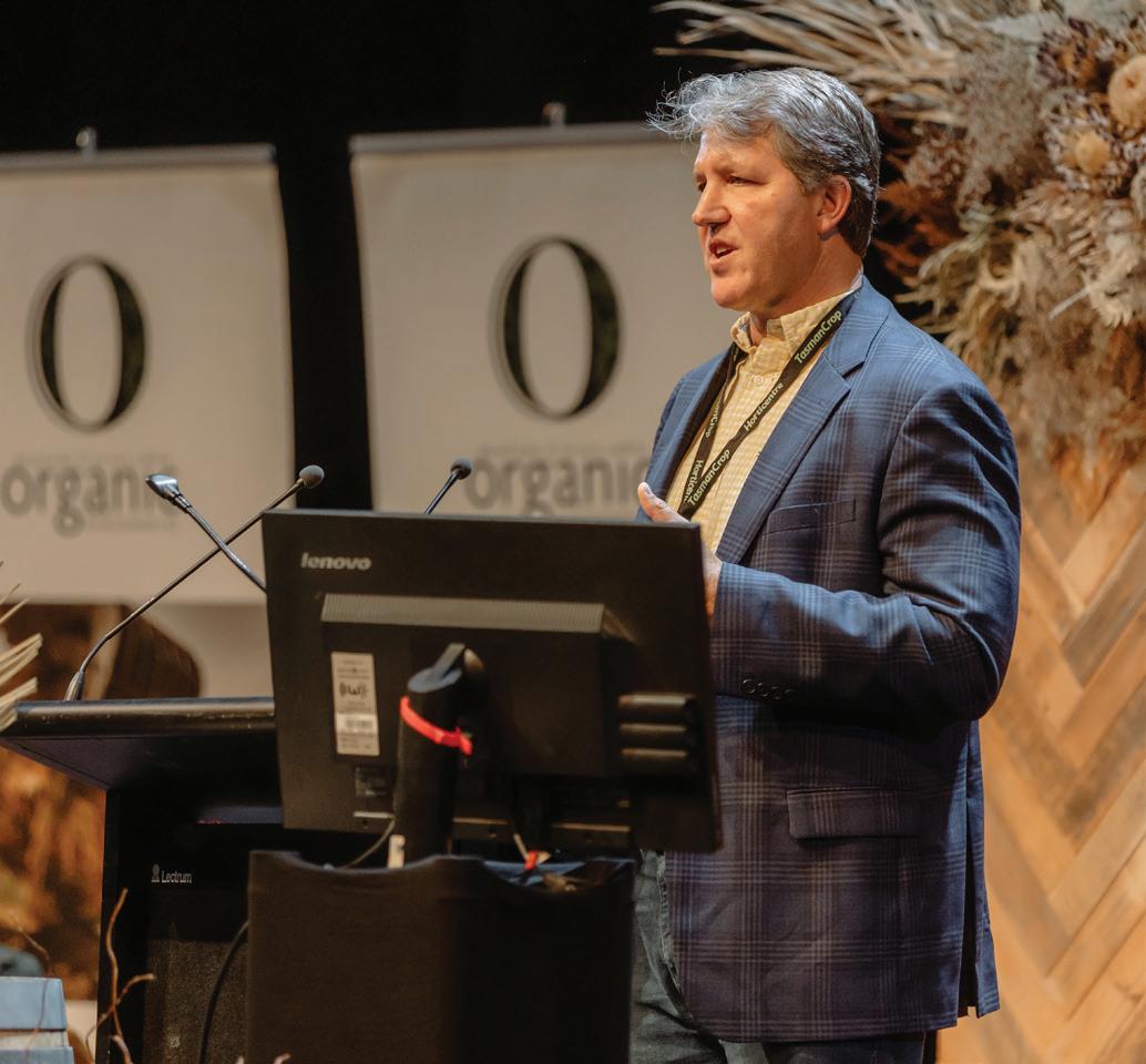 What role do organic farming practices have to play in the global carbon picture? Keynote speaker Dr Andrew (Drew) Smith, from the Rodale Institute in the USA, answered this question with an impressive amount of data in his first talk, “Regenerative Organic Agriculture and the Soil Carbon Solution”. The Rodale Institute is a pioneering force in on-farm research and advocacy for regenerative organic farming. Through their own long-term farm research studies, they have the numbers to prove the value of their work.