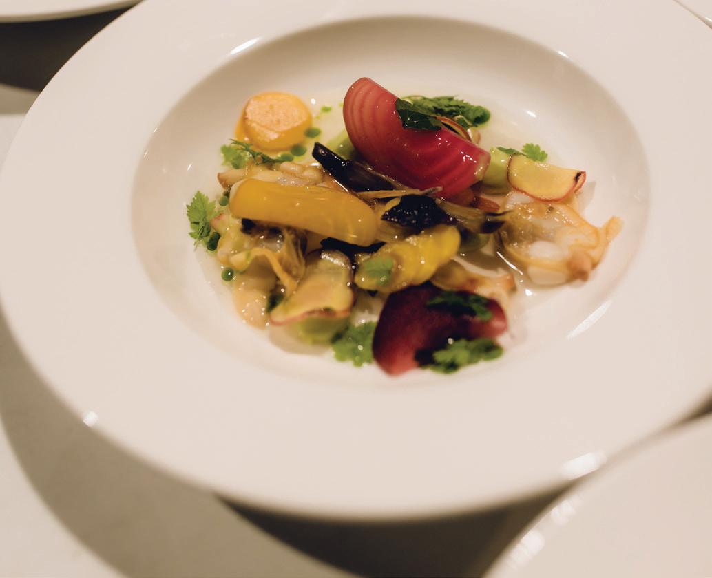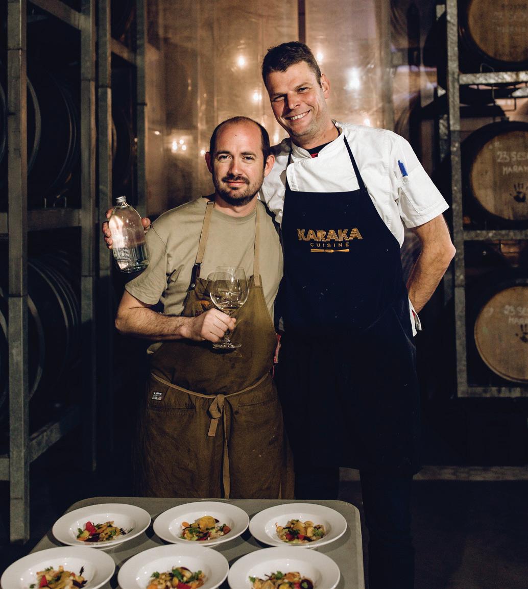 Hawke’s Bay small producers’ organic wines at the Aotearoa organic wine tasting. Guest chef Giulio Sturla (left) pauses with local chef Sander de Wildt while preparing the Organic Feast. Andrew Gillions from Huia pours for Linlin Yang of Plant and Food Research. OWNZ conference organiser Naomi Galvin (right) with OWNZ coordinator Rebecca Reider. One of Giulio and Sander’s artworklike feast creations, featuring clams and pickles. Feast dinner guests at the transformed Coterie barrel hall.