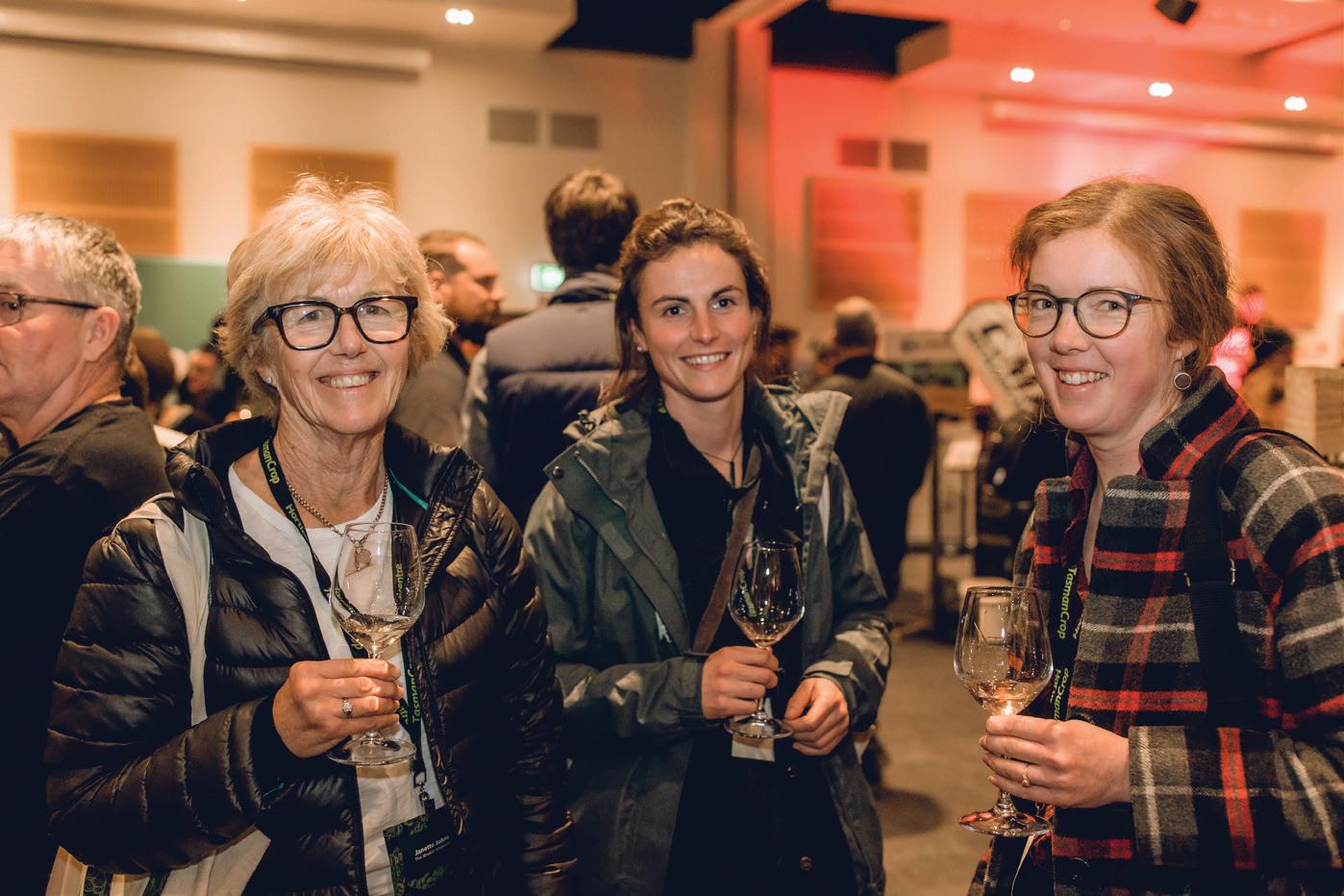 Top: Wrekin team members Jan Johns, Margaux Demalle and Anna Johns at the Organic and Biodynamic Winegrowing Conference.