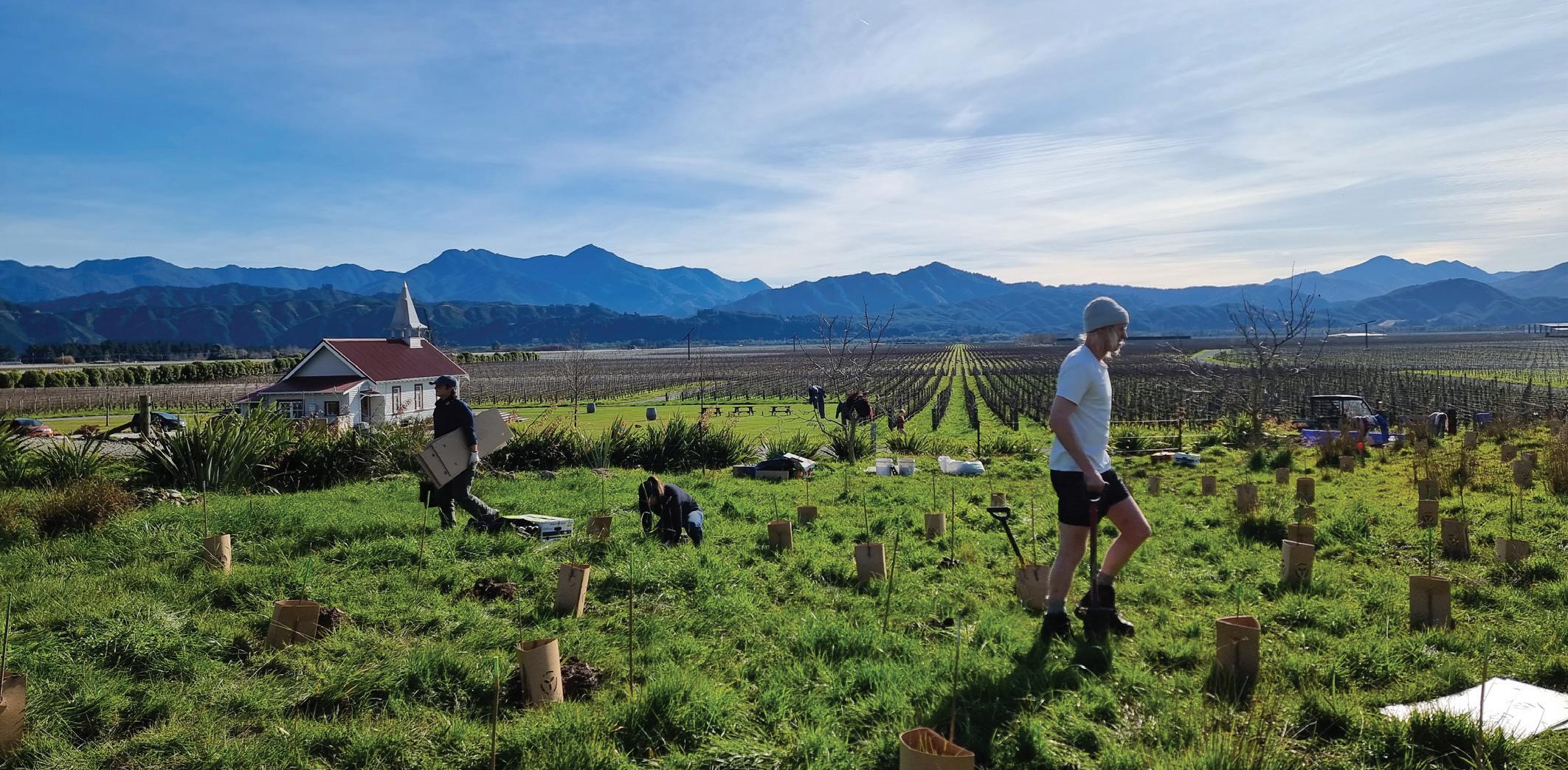 Over the last few years, about 5000 native plants and trees have been planted by Clos Henri to help in this regeneration. This year it was decided to accelerate the process to benefit the environment further. Marlborough now has its own initiative, Climate Action Marlborough, which has shown that the best solutions happen when local groups get involved to make changes in their own community.