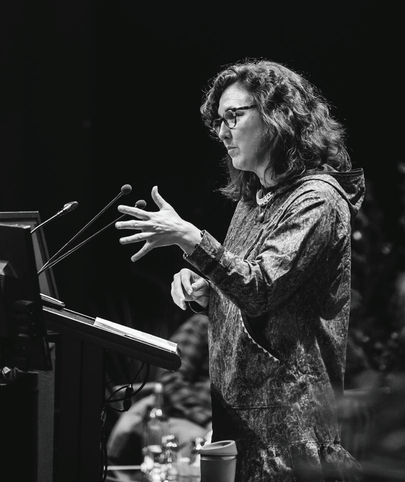 to action. A former philosophy lecturer, Elaine shared a bit of wisdom from the philosophy of stoicism: “When you are in the hardest moments of your life, do not hope to get out of them.” Rather than hoping for things to be different, Elaine argued, we must accept our situation in order to act.