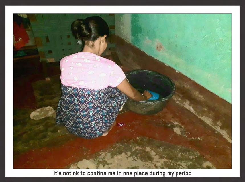 Young women faced additional and unique constraints on their agency and bodily autonomy, especially regarding menstruation. They were made to feel ashamed about their bodies because of internalized beliefs that menstruation is ‘unclean’ and ‘impure’. During their periods, young women were routinely stigmatized and subjected to a range of restrictive norms so as not to contaminate others, especially men and boys. This included, for example, being confined in separate rooms of their household, restricted from touching male family members, prevented from cooking food, and barred from participating in religious practices and celebrations.