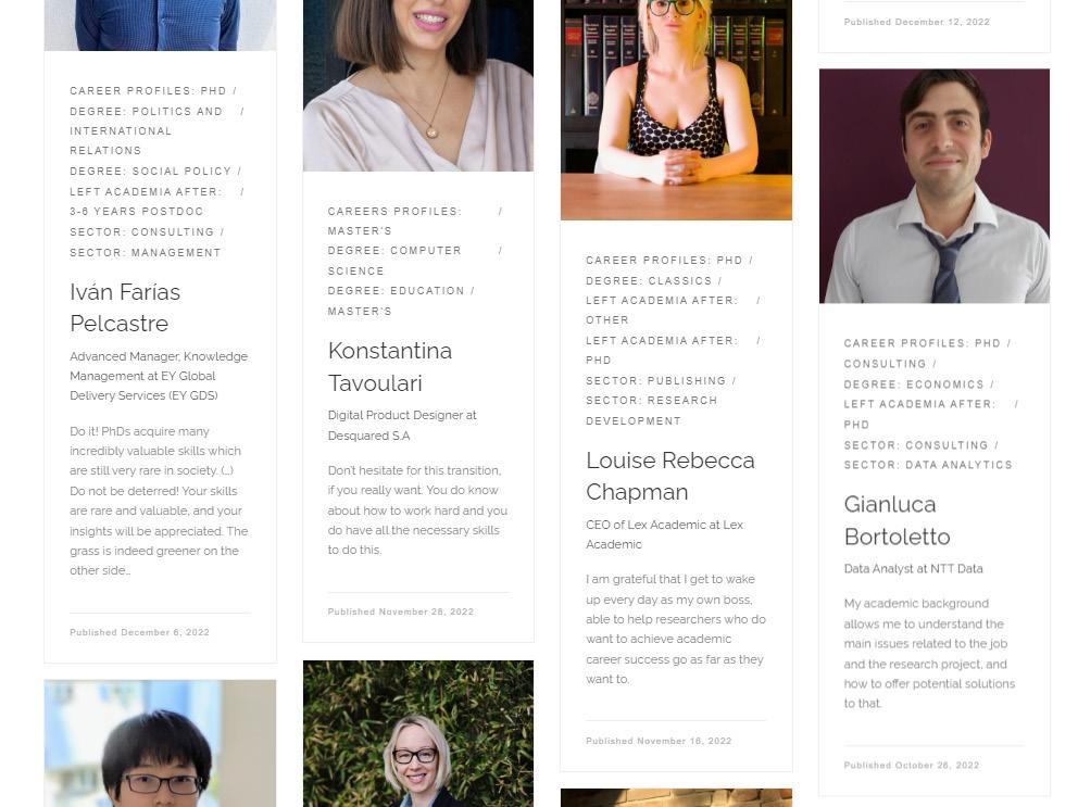 • The team profiles PhD-holders who moved into a range of jobs beyond academic research and their employers.