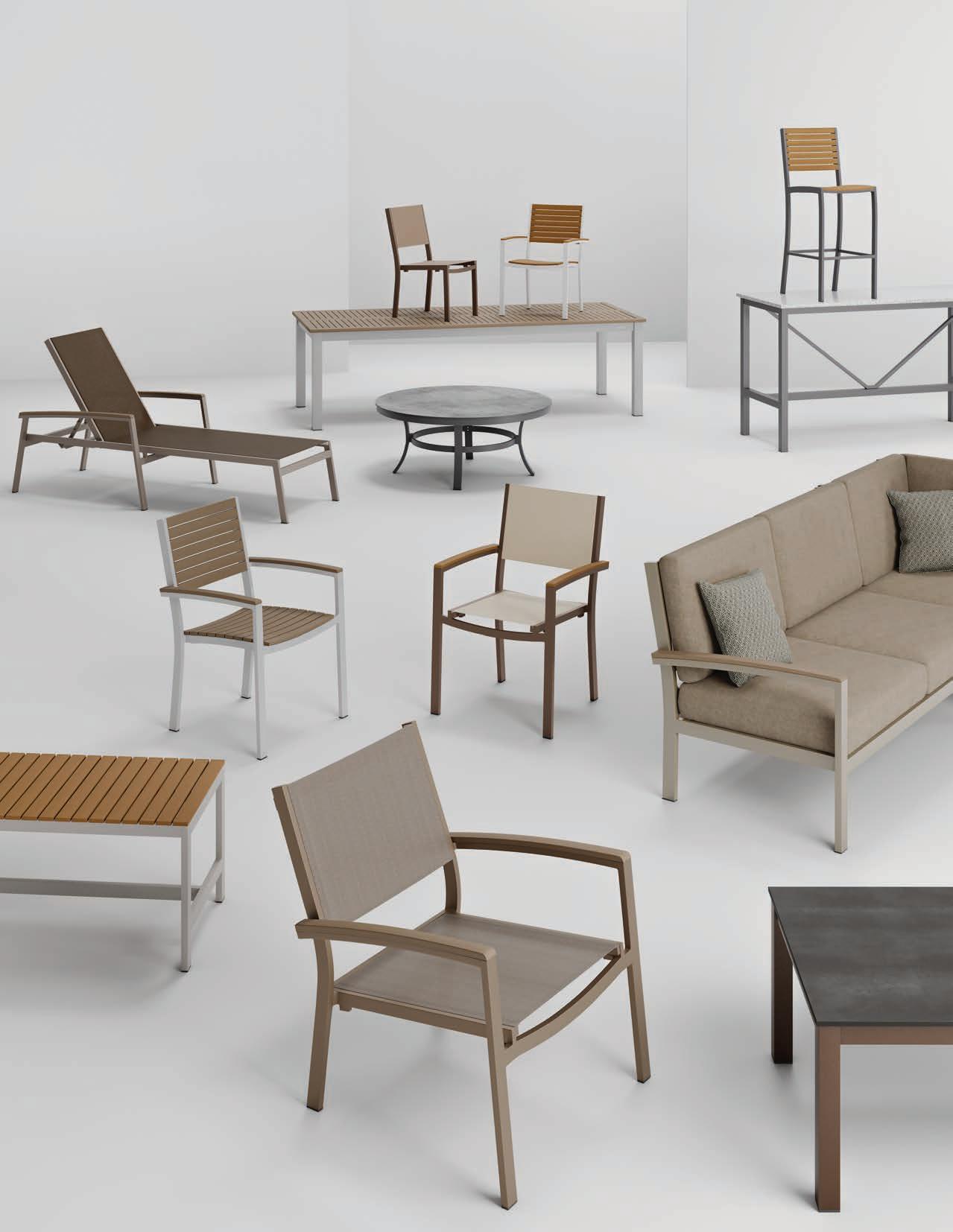 KAPRI ARMCHAIR 39, 40-41, 43, 45, 198 AZAL ARMCHAIR 21, 22-23, 195 NETTE ARMCHAIR 91, 97, 205 TRAVIRA ARMCHAIR 161, 219 TRAVIRA SLING ARMCHAIR 161, 165, 218 OLAND ARMCHAIR 99, 100-101, 102,104, 206 BELANI ARMCHAIR 25, 26-27, 28, 195 EILAND ALUMINUM ARMCHAIR 196 EILAND ARMCHAIR 31, 32-33, 34, 196 SALINO WICKER ARMCHAIR 119, 210 ARGENTO ARMCHAIR 13, 16, 17, 194 LIPARI ARMCHAIR 63, 64-65, 66, 201 MERA STACKING ARMCHAIR 137, 138-139, 142, 143, 213 CLASSIC ARMCHAIR 153, 212 MARKOE ARMCHAIR 81, 82-83, 88, 89, 204 ORSO SLING ARMCHAIR 107, 207 ORSO WOVEN ARMCHAIR 107, 108-109, 110, 111, 207 LIDO ARMCHAIR 55, 58, 200 MALTI ARMCHAIR 71, 72-73, 76-77, 202 SEAVO ARMCHAIR 78, 129, 130-131, 133, 211 TULLE DINING 177, 178-179, 182, 183, 185, 225 KAPRI SIDE CHAIR 39, 198 TRAVIRA SIDE CHAIR 219 TRAVIRA SLING SIDE CHAIR 161, 218 EILAND SIDE CHAIR 196 ARGENTO SIDE CHAIR 13, 16, 17, 194 LIPARI SIDE CHAIR 63, 201 CLASSIC SIDE CHAIR 212 MARKOE SIDE CHAIR 204 ORSO SLING SIDE CHAIR 107, 207 ORSO WOVEN SIDE CHAIR 107, 207 MALTI SIDE CHAIR 202 SEAVO SIDE CHAIR 78, 129, 211 TRAVIRA 63” RECT. DINING TABLE 220 TRAVIRA 60” SQUARE DINING TABLE 220 TRAVIRA 48” ROUND DINING TABLE 221 TRAVIRA 34”X48” RECT. TABLE 222 TRAVIRA 39” SQUARE DINING TABLE 220 TRAVIRA 103” RECT. DINING TABLE 16, 26-27, 64-65, 66, 82-83, 161, 165, 220 EILAND 63” RECT. DINING TABLE 22-23, 31, 32-33, 34, 40-41, 45, 58, 100-101, 104, 108-109, 197 EILAND 45” SQUARE DINING TABLE 31, 72-73, 108-109, 197 EILAND 36” SQUARE DINING TABLE 97, 197 ARGENTO ARMLESS CHAISE LOUNGE 13, 17, 194 EILAND ARMLESS CHAISE LOUNGE 31, 32-33, 37, 196 TRAVIRA SLING CHAISE LOUNGE 161, 174, 218 VEN CHAISE LOUNGE 187, 188-189, 190, 227 OXFORD CHAISE LOUNGE 48-49, 137, 146, 214 OXFORD 48” ROUND DINING TABLE 214 OXFORD 67” ROUND DINING TABLE 138-139, 142, 214 OXFORD 42” DINING TABLE 153, 214 MALTI 48” ROUND DINING TABLE 77, 203 MALTI 76” RECT. DINING TABLE 78, 203 MALTI 36” ROUND DINING TABLE 76, 130-131, 203 TULLE 48” ROUND DINING TABLE 77, 177, 178-179, 185, 225 TULLE 45” SQUARE DINING TABLE 177, 183, 225 TULLE 78” RECT. DINING TABLE 182, 225 EILAND 36” SQUARE BAR TABLE 31, 42, 44, 94, 108-109, 113, 197 ISLAY 36” SQUARE BAR TABLE 137, 144, 145, 213 TRAVIRA 72” RECTANGULAR BAR TABLE 161, 164, 174, 220 TRAVIRA 38” SQUARE BAR TABLE 222 TRAVIRA 36” ROUND CAFE BAR TABLE 221 TRAVIRA 36” ROUND BAR TABLE 223 TRAVIRA 26” SQUARE BAR TABLE 222 TRAVIRA 24” ROUND BAR TABLE 223 TRAVIRA 34” SQUARE BAR TABLE 222 TRAVIRA 32” ROUND BAR TABLE 223 MALTI 36” ROUND BAR TABLE 130-131, 203 EILAND 45” SQUARE COUNTER TABLE 197 TRAVIRA 39” SQUARE COUNTER TABLE 221 TRAVIRA 72” RECTANGULAR COUNTER TABLE 220 TULLE 48” ROUND BAR TABLE 72-73, 177, 178-179, 225 TRAVIRA 36” ROUND BISTRO TABLE 223 TRAVIRA 38” SQUARE BISTRO TABLE 222 TRAVIRA 36” ROUND CAFE BISTRO TABLE 221 TRAVIRA 32” ROUND BISTRO TABLE 223 TRAVIRA 34” SQUARE BISTRO TABLE 222 TRAVIRA 24” ROUND BISTRO TABLE 223 TRAVIRA 26” SQUARE BISTRO TABLE 222 TRAVIRA 24” ROUND CAFE BISTRO TABLE 221
